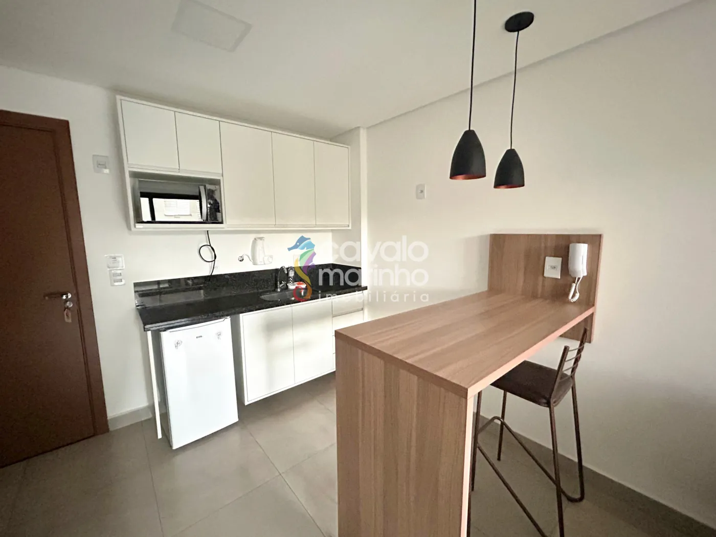 Um belo apartamento/studio totalmente mobiliado, com 1 quarto, sala, sacada, cozinha com armários e 1 vaga de garagem.