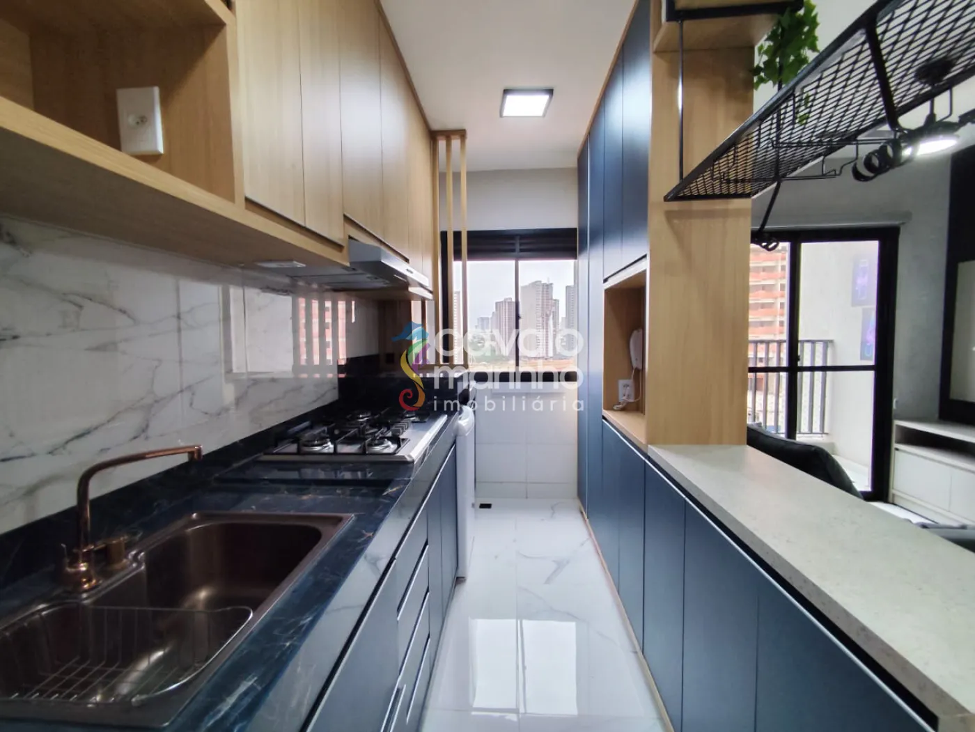 Possui sala dois ambientes com painel de TV, sacada, cozinha com armários planejados, área de serviço e 1 vaga descoberta de garagem.