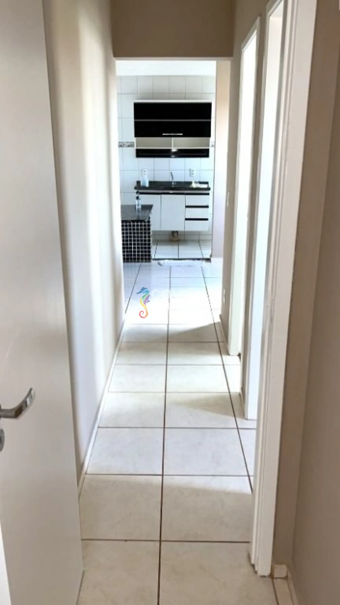 O apartamento conta com dois quartos, um banheiro, sala aconchegante com painel para TV, cozinha com armário, área de serviço e uma vaga de garagem coberta.