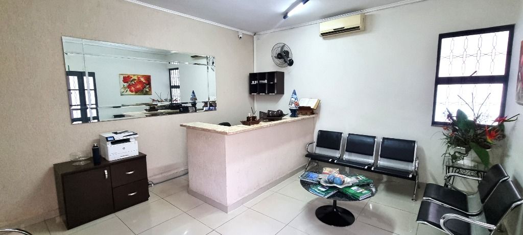 Mobiliada com 7 salas, ar condicionado, recepção, banheiros, cozinha, copa, área de serviço, quintal, e 1 vaga coberta na garagem.