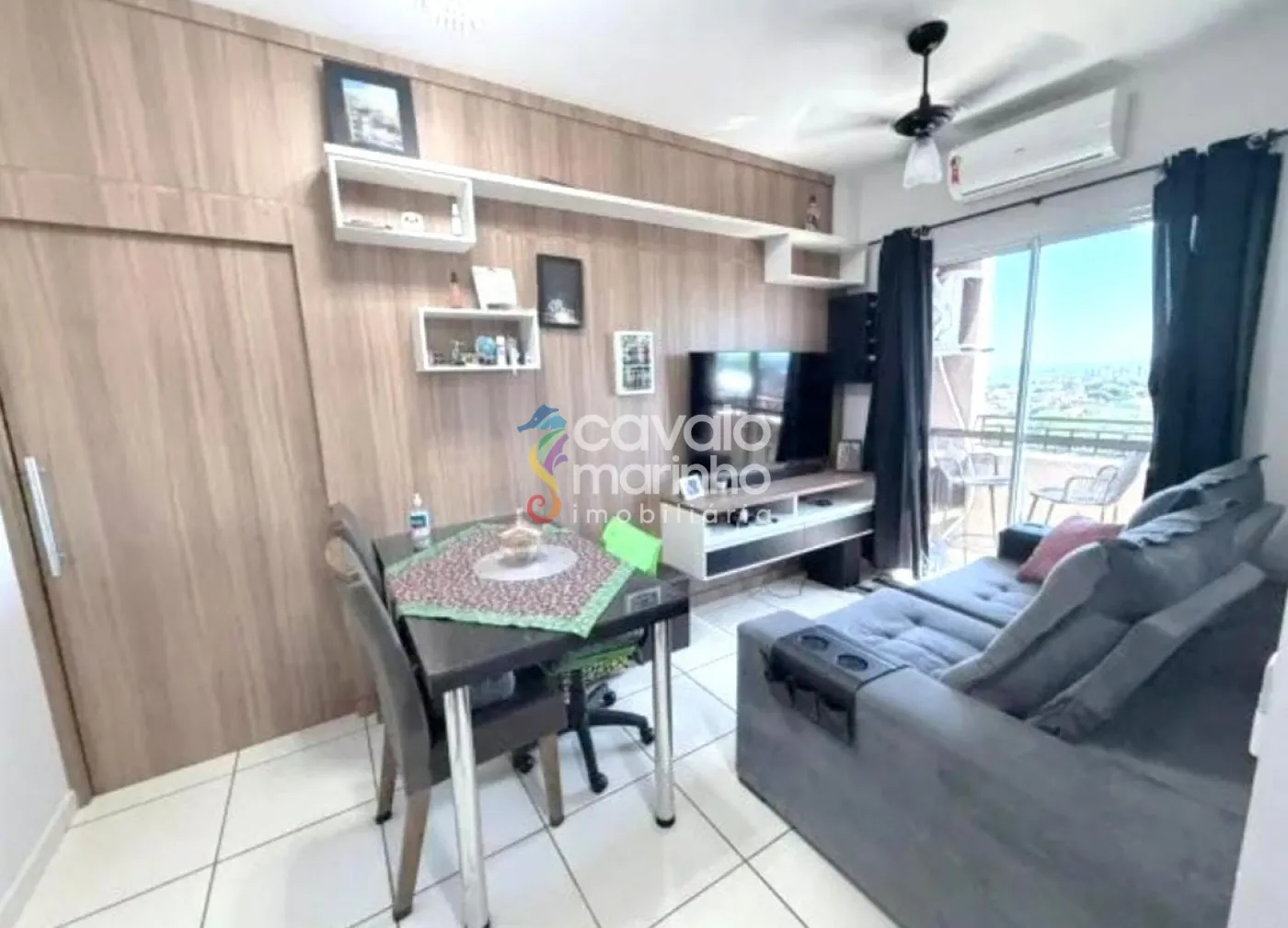 O apartamento conta com 2 quartos com armários, sala dois ambientes, sacada, cozinha com armários, área de serviço e 1 vaga de garagem coberta.
