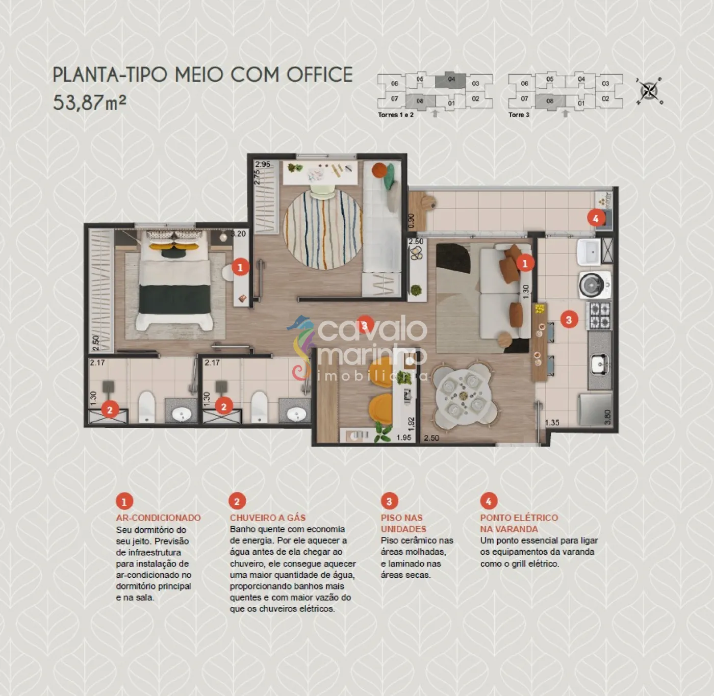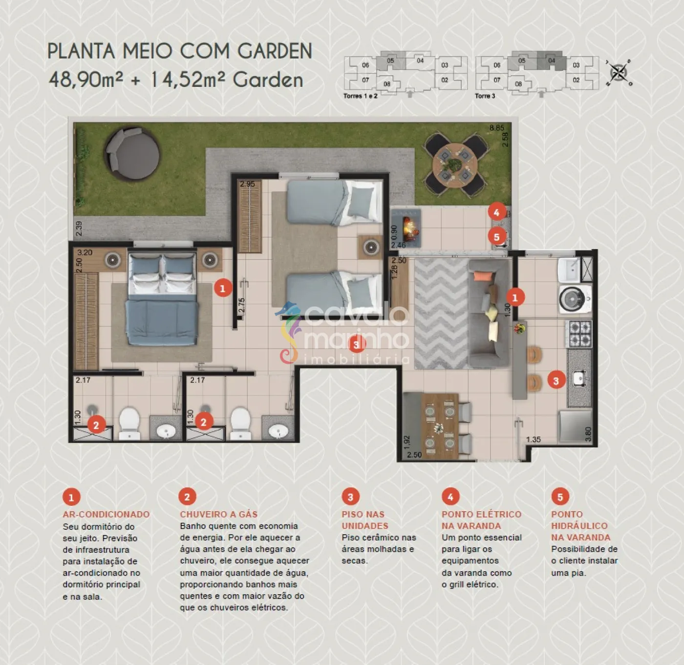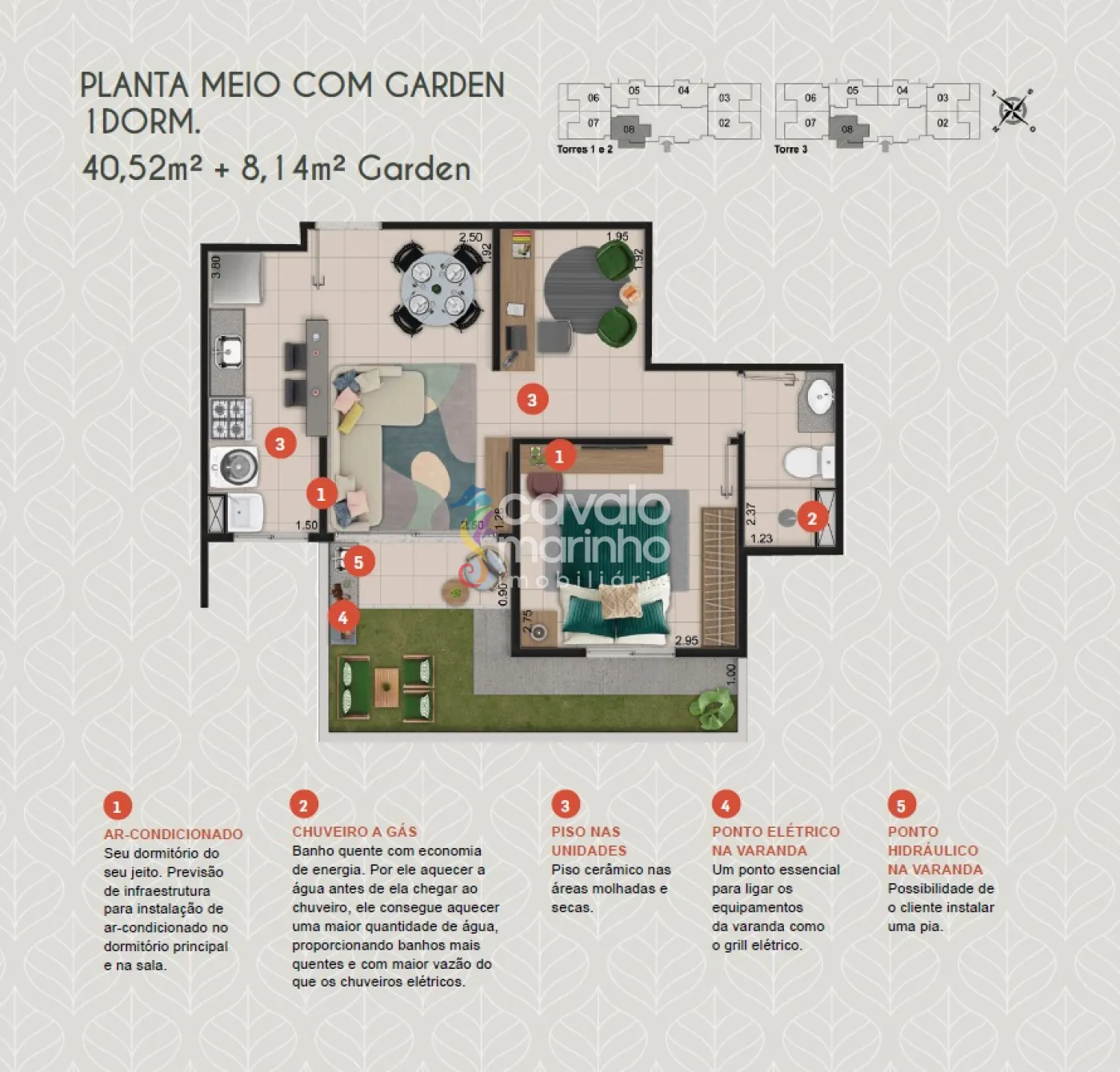 Apartamentos com diferentes opções de plantas e metragens para você escolher.