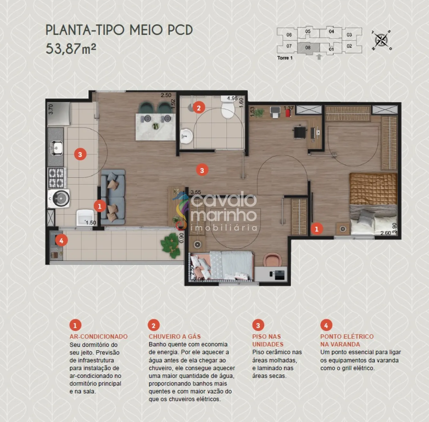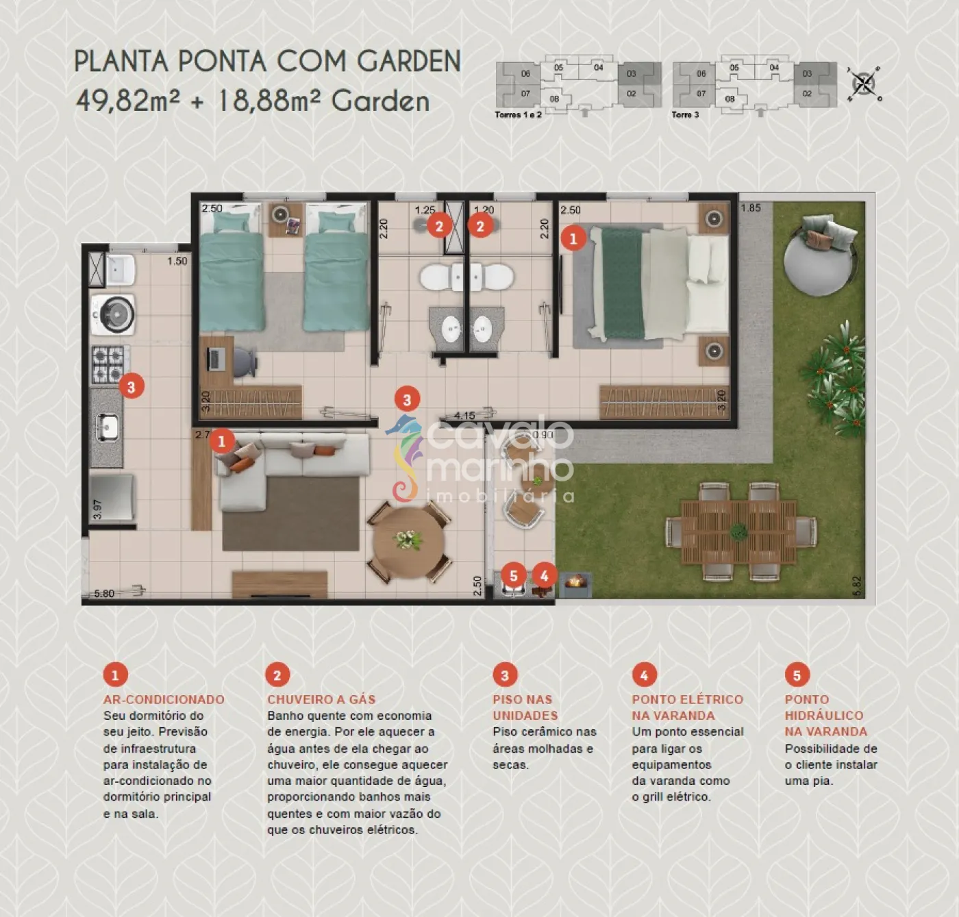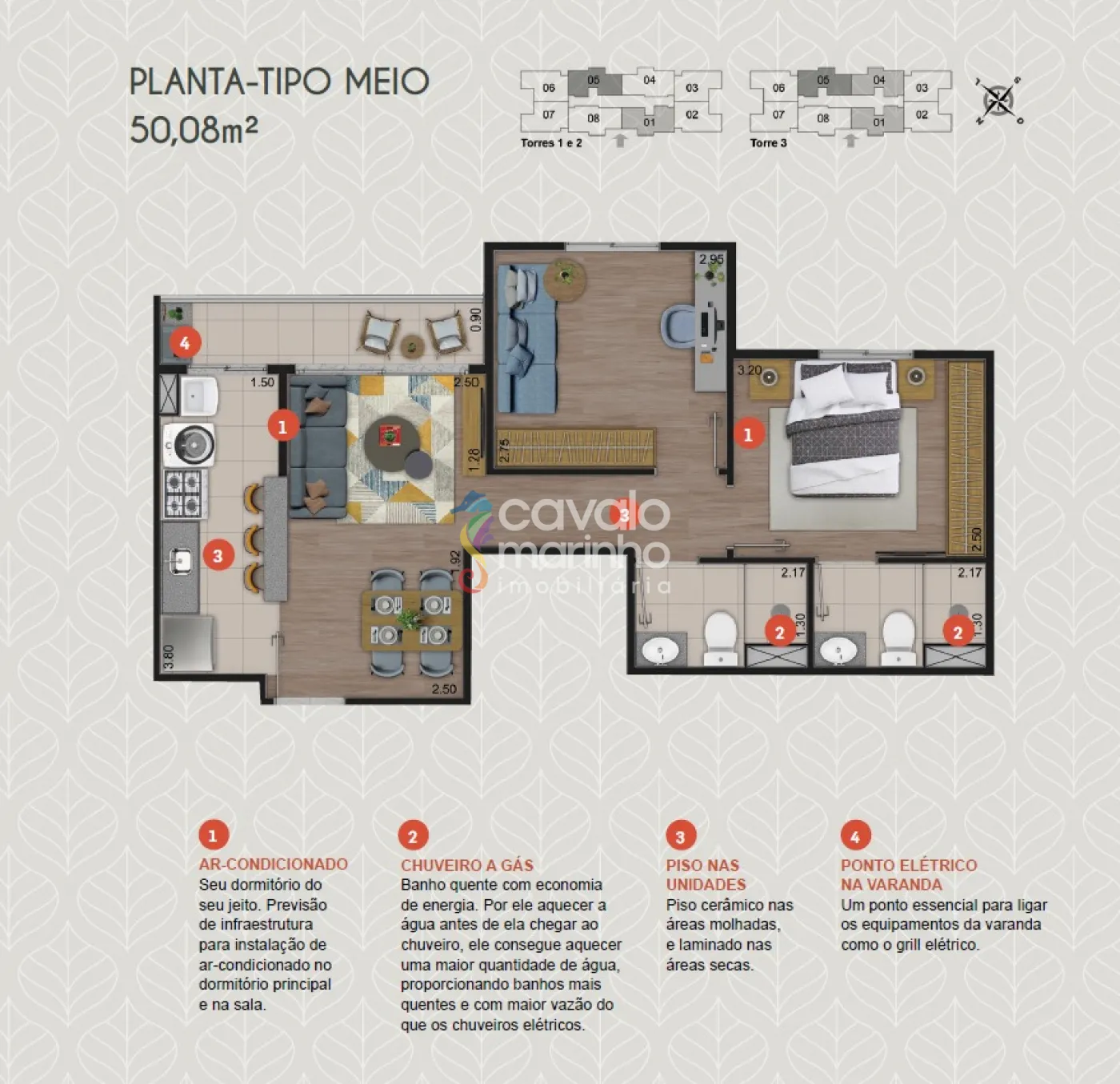 Apartamentos com diferentes opções de plantas e metragens para você escolher.