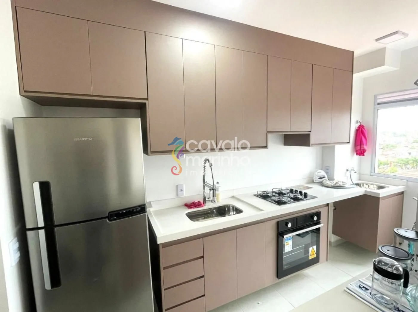 O apartamento conta com dois quartos, um banheiro social, sala, uma cozinha com armários planejados, e uma área de serviço funcional.