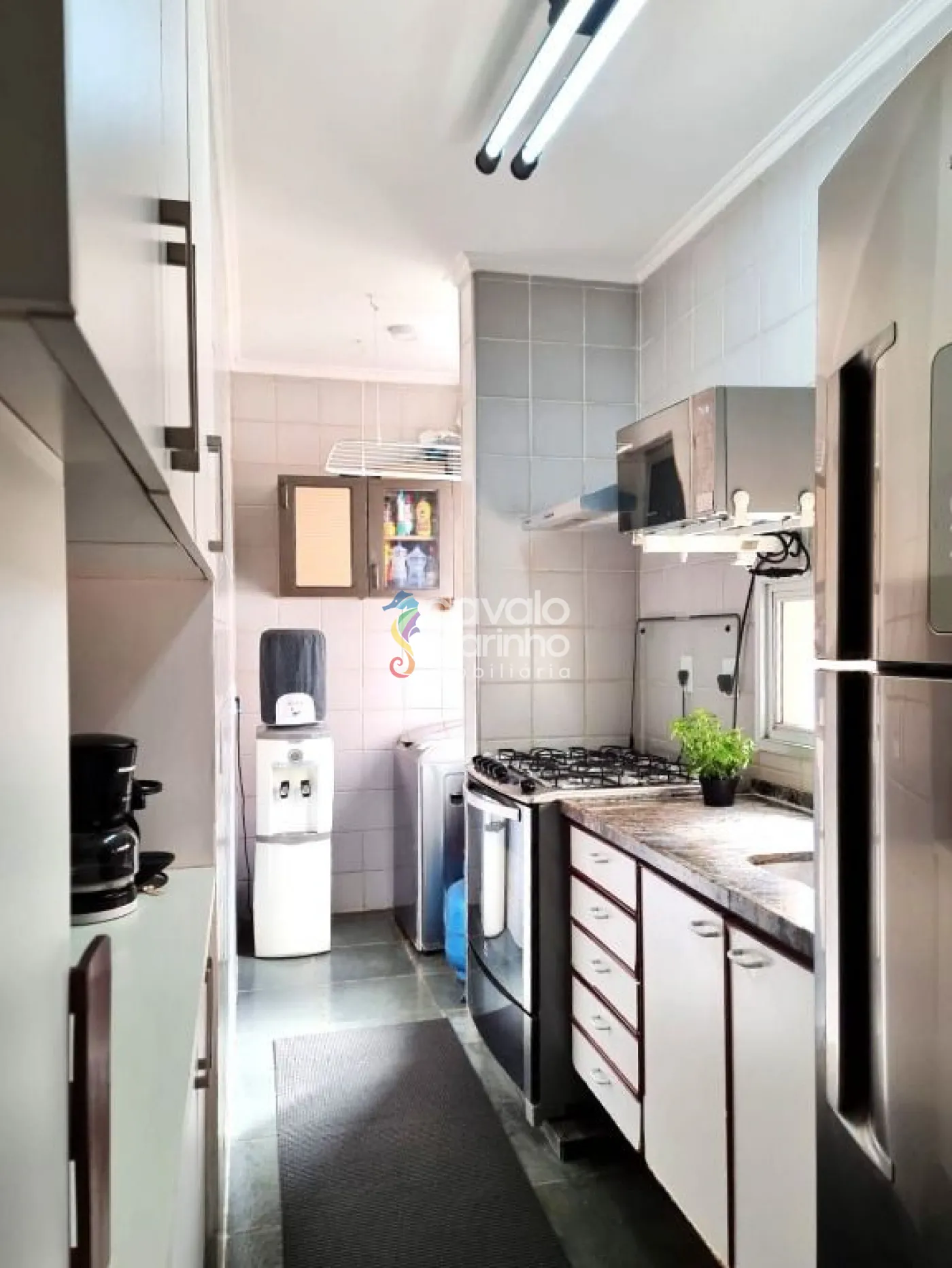 Possui três quartos, todos com armários, uma sala, banheiro, e uma cozinha com armários, área de serviço.