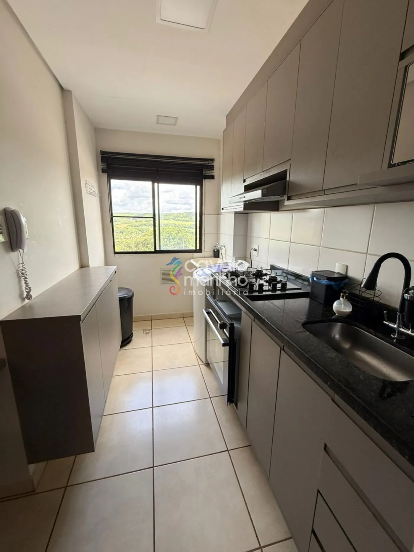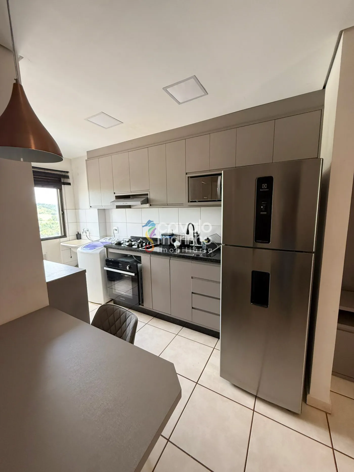 Belo apartamento com 2 quartos com armários e ventilador de teto, sala dois ambientes com painel de TV e ventilador, proporcionando um espaço aconchegante e funcional, um banheiro, cozinha com armários planejados, área de serviço e 1 vaga de garagem coberta.