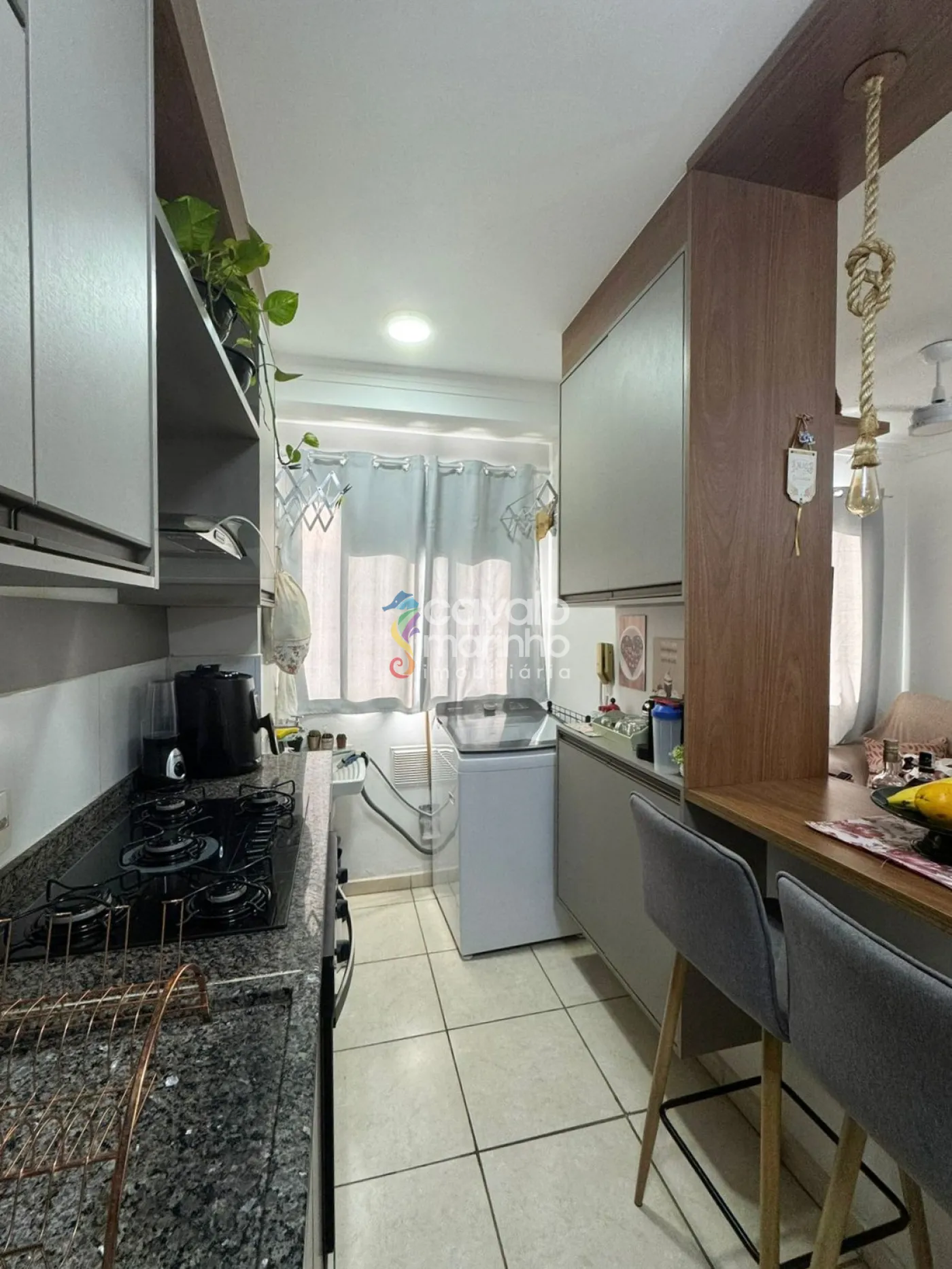 O apartamento conta com 2 quartos com armários, sala dois ambientes, cozinha planejada com armários, área de serviço e 1 vaga coberta de garagem.