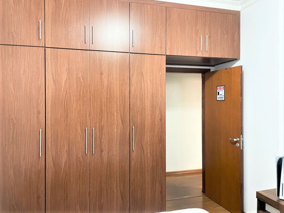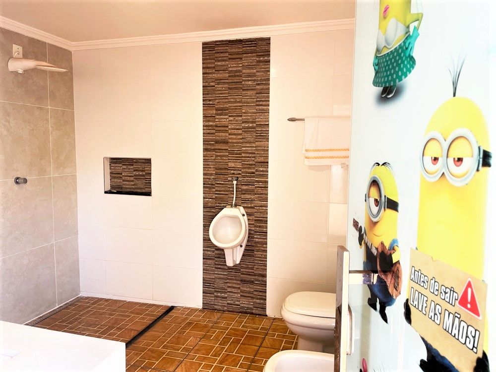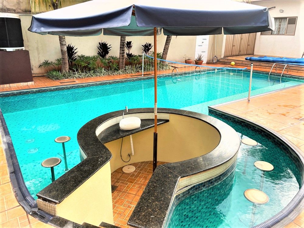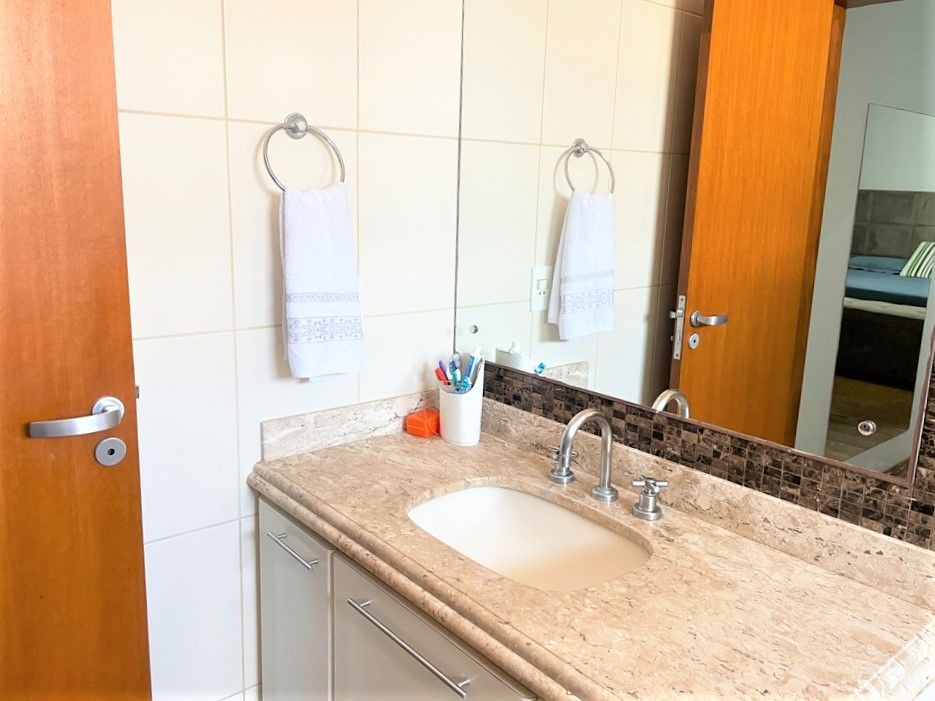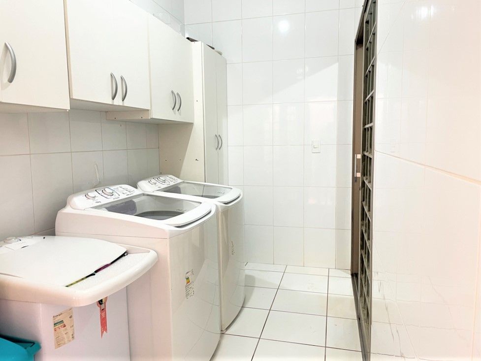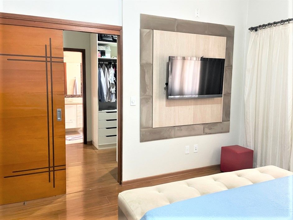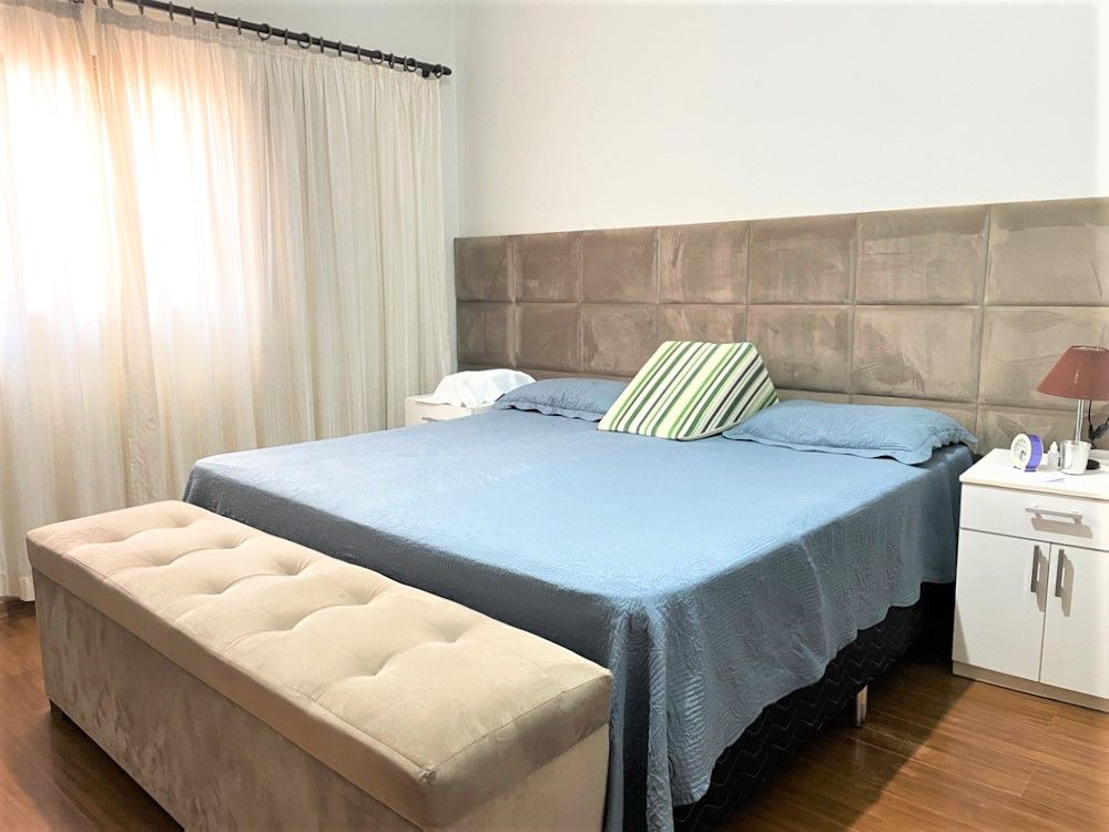 São 3 dormitórios com armários, sendo 1 suíte com closet, ar condicionado, banheiros, sala 2 ambiente, lavabo, escritório, cozinha com armários planejados, área de serviço, quintal com churrasqueira, forno de pizza, piscina com bar, sauna, e 6 vagas na garagem.