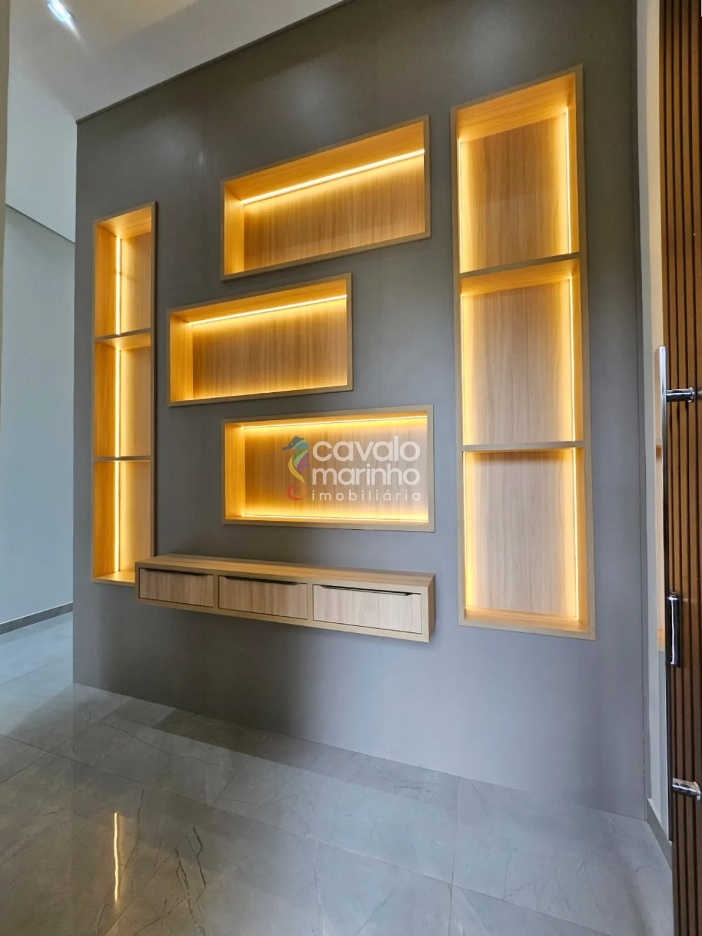 Uma maravilhosa casa térrea com 4 suítes, todas com armários. O imóvel conta com sala com pé-direito alto, iluminação completa, lavabo e escritório planejado.