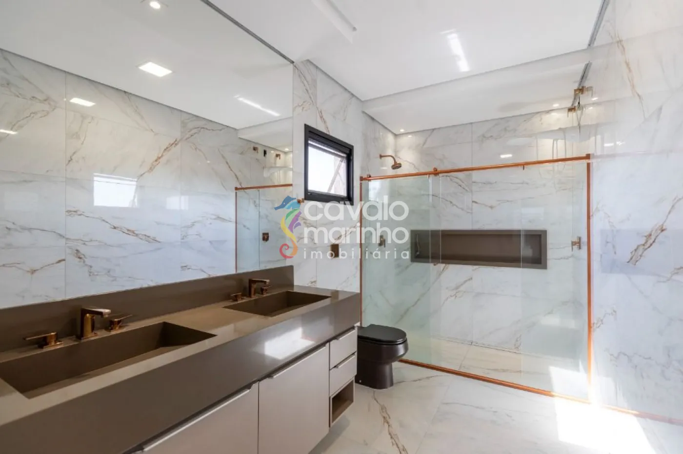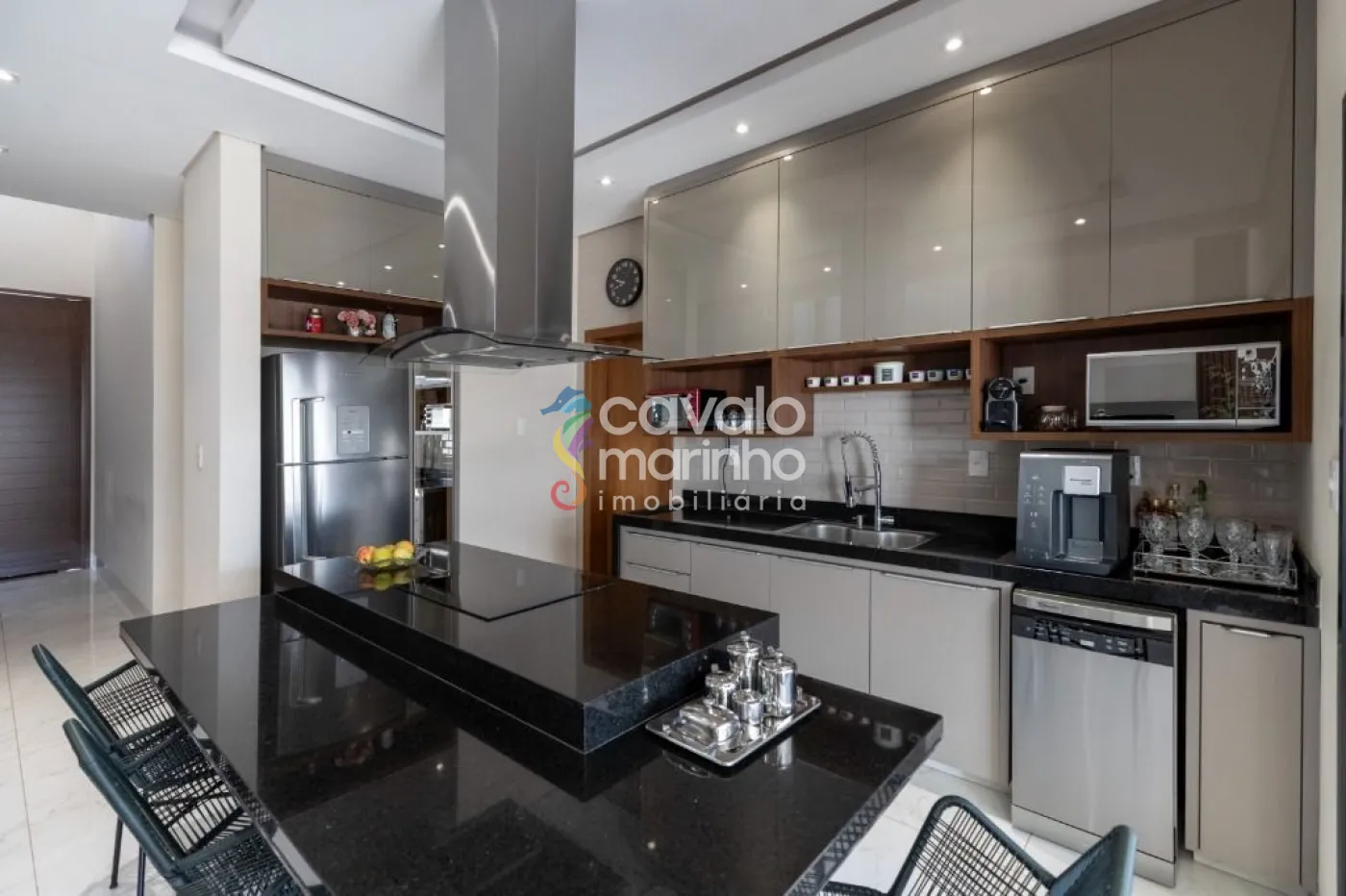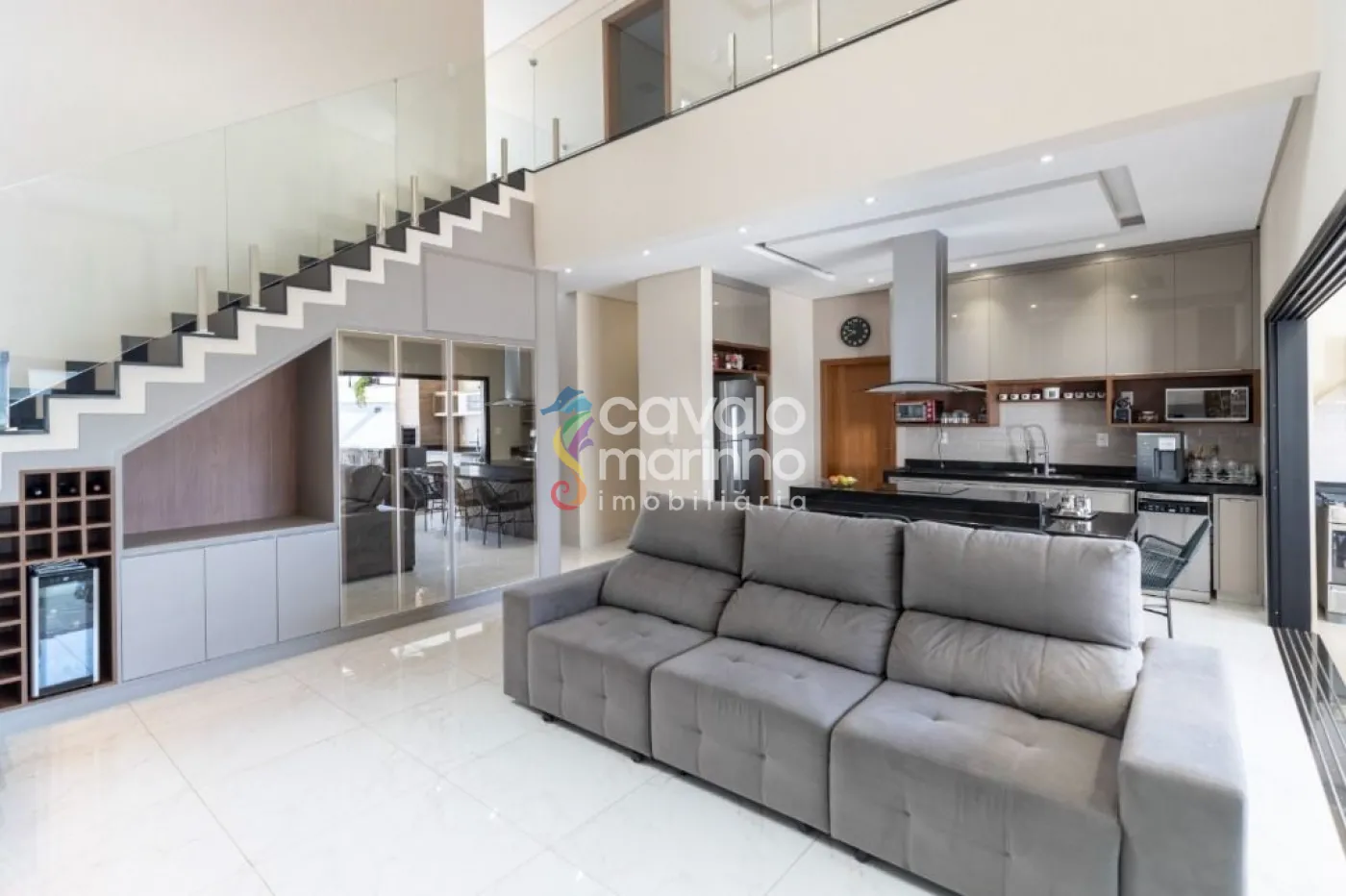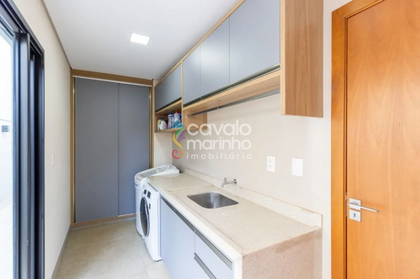 Além disso, copa no andar de cima e uma área de serviço com armários, além de quatro vagas de garagem, sendo duas cobertas e duas descobertas.