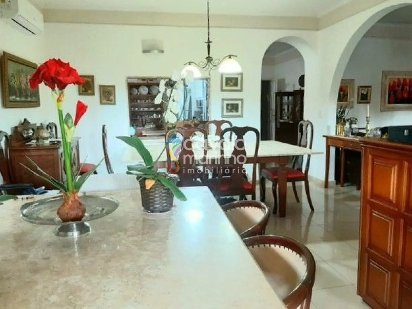 Bela casa de ilha à venda com 4 suítes, sala em 3 ambientes, ar condicionado nas suítes e sala, cozinha planejada e equipada com fogão embutido e coifa em inox, lavabo, escritório, copa, 2 quartos de serviço e banheiro, varanda, piscina com hidro e cascata, churrasqueira, aquecedor solar em toda a casa, e 2 vagas cobertas.